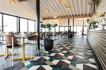 Vinyl is cost effective. Luxury vinyl flooring offers a richness and texture comparable to that of natural materials. LVF is durable and easy to clean. Perfect for a busy establishment.